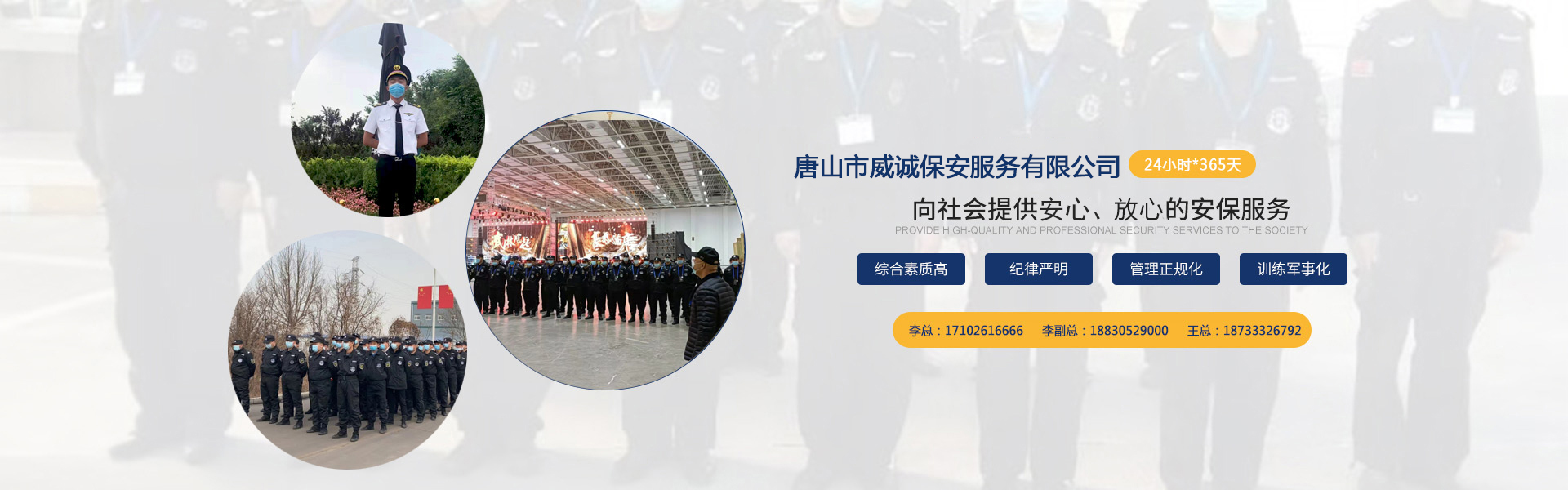 唐山市威誠保安服務有限公司自成立以來以“嚴防死守、忠于業(yè)主”為服務原則,以“客戶滿意、 合作共贏”為根本目標。以科學的管理、多方位多層次的服務,建立了首問責任制,完善了走訪、回訪 、滿意度調(diào)查、末位淘汰的預警管理,不斷提高服務質(zhì)量,提高業(yè)主滿意度,提高企業(yè)形象。秉承“誠 實守信,紀律嚴明,團結(jié)協(xié)作,致精致誠”的服務理念,為客戶提供高品質(zhì)、多方位、專業(yè)化的保安服務。 本公司制定了嚴謹?shù)亩ㄏ蛘猩?、崗前培訓、考核錄用、崗中培訓、?..